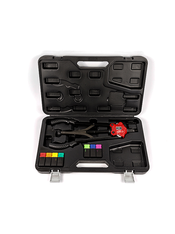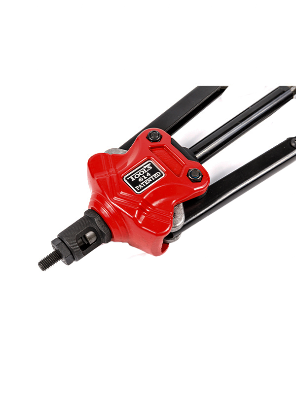鉻鉬合金鋼鉚接桿,創新連動臂設計與手柄一起實現自動退出螺母,操作省時省力快速,人體工學設計弧形把手配合PVC柄套,操作更省力,使用更舒適。
